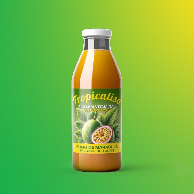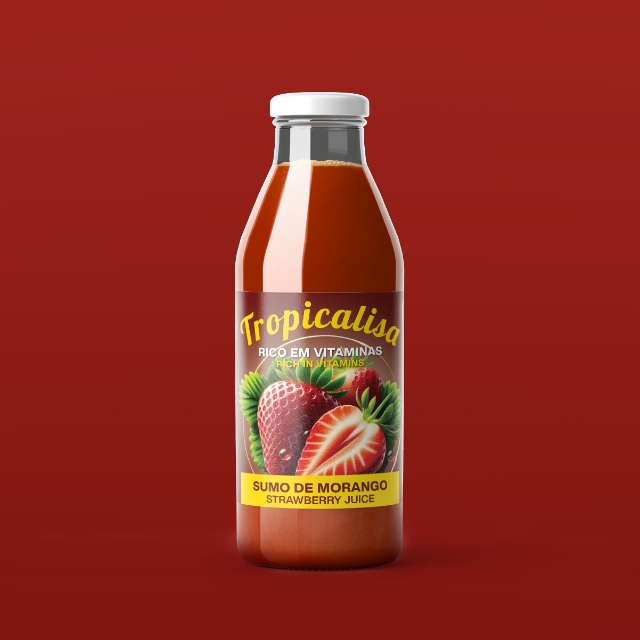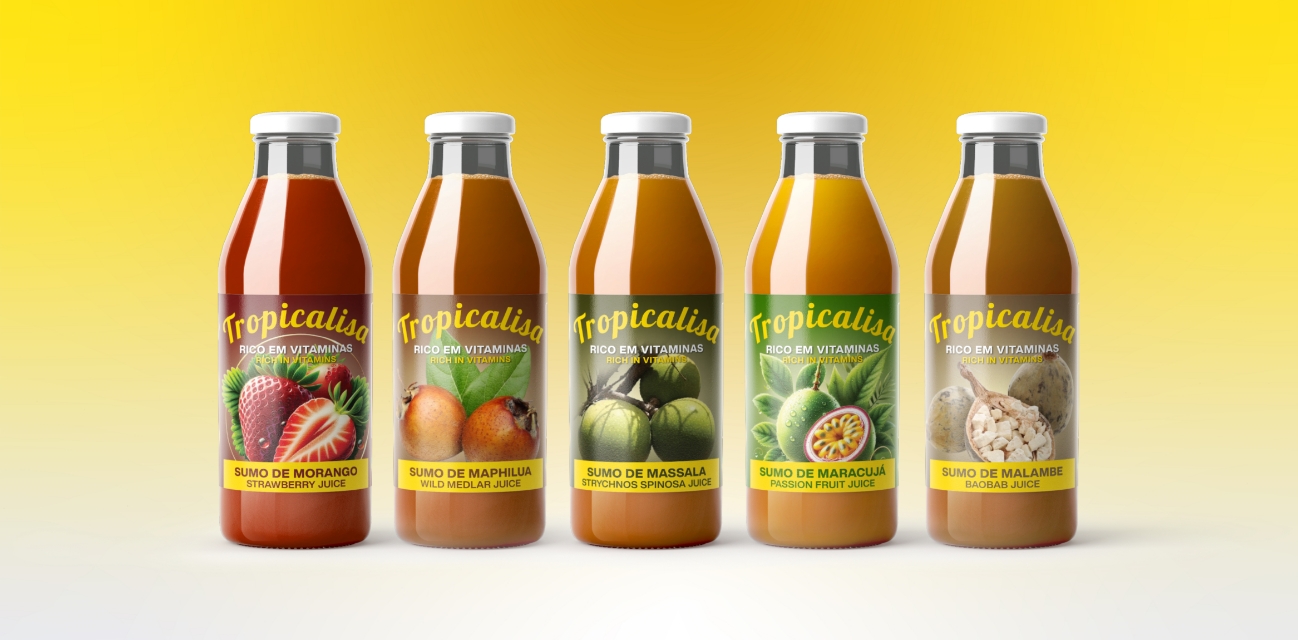 Para acompanhar a expansão da Tropicalisa, fomos responsáveis pelo desenvolvimento dos rótulos de uma nova linha de sumos naturais. A proposta incluiu a criação de uma identidade visual clara e apelativa, capaz de transmitir frescor, autenticidade e ligação direta à natureza. Trabalhámos com diferentes sabores — morango, malambe (baobá), maracujá e outros —, desenvolvendo soluções gráficas que equilibram atratividade no ponto de venda e clareza informativa.